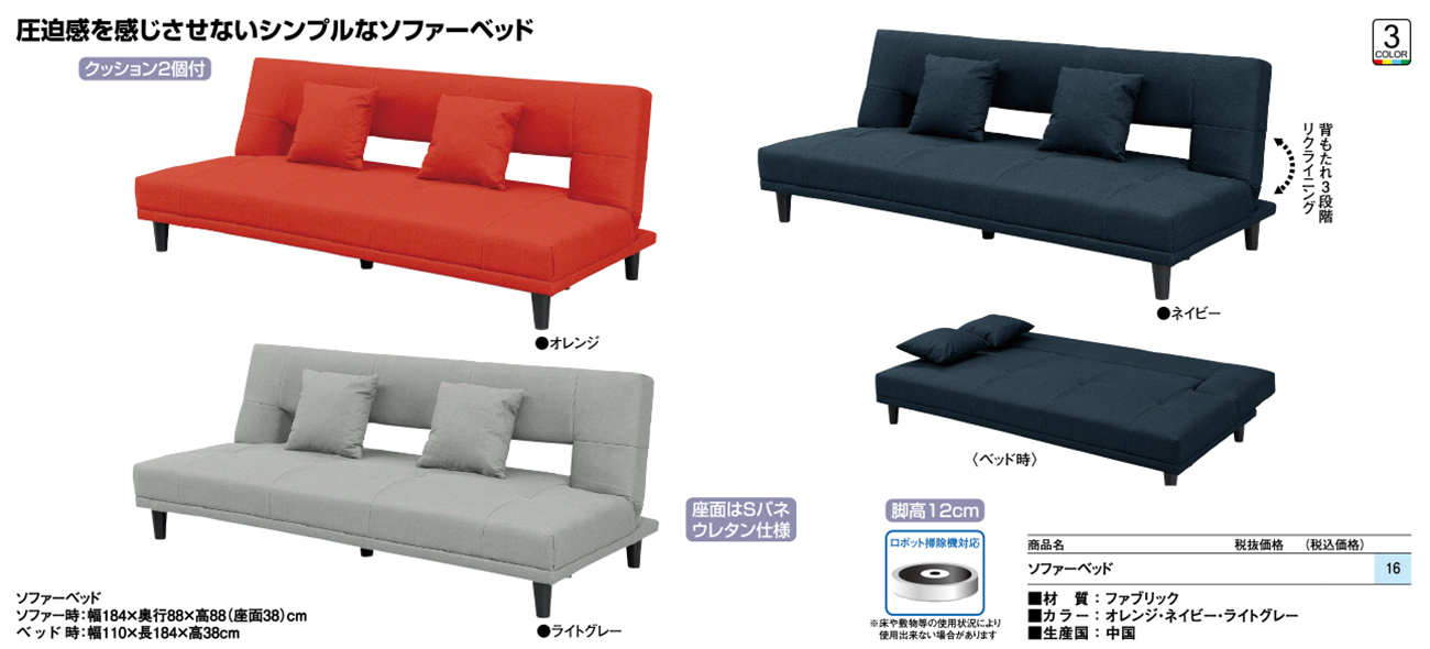 - ソファーベッド 税抜46, 720円 (税込51, 392円)