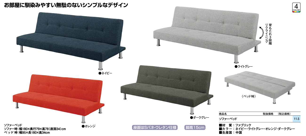 - ソファーベッド 税抜29, 600円 (税込32, 560円)