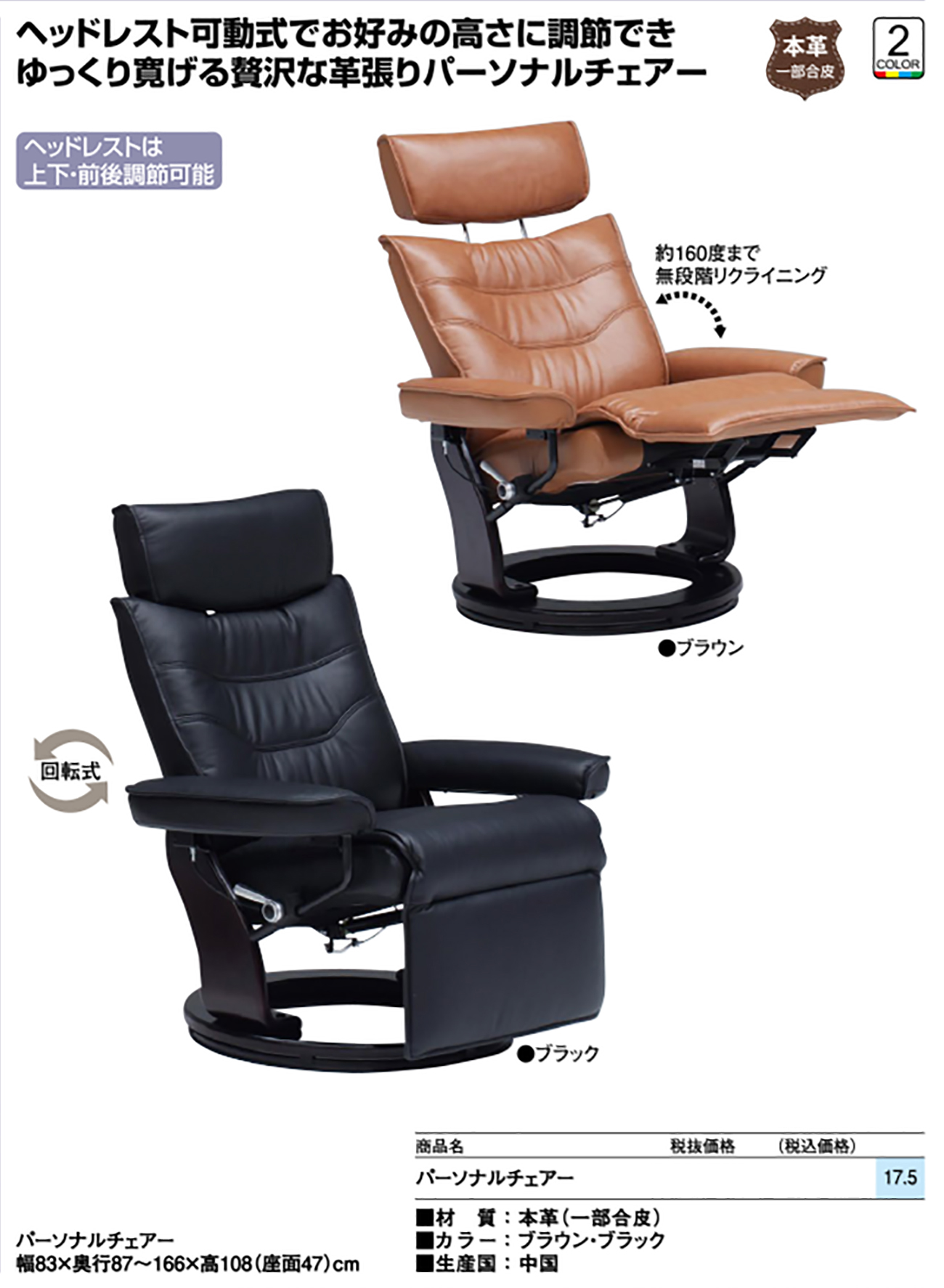 - パーソナルチェアー 税抜120, 560円 (税込132, 616円)