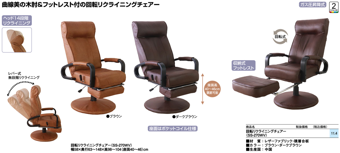 • 回転リクライニングチェアー (SS-270WV) 税抜41, 600円 (税込45, 760円)