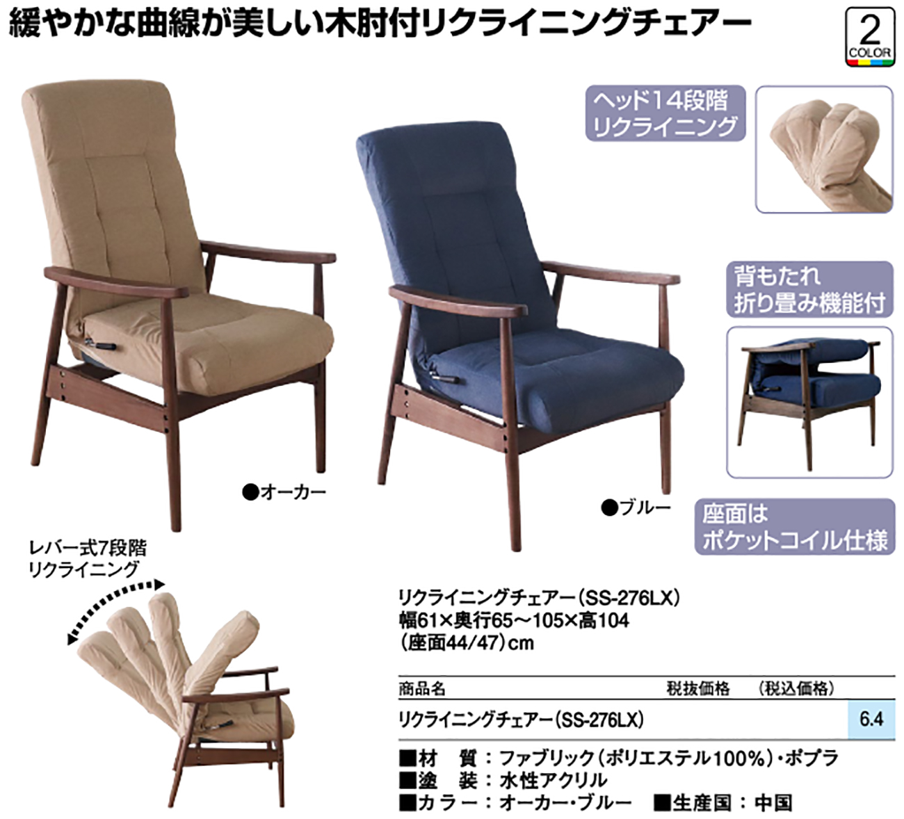 - リクライニングチェアー(SS-276LX) 税抜33, 600円 (税込36, 960円)