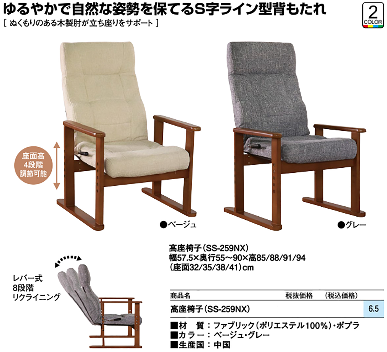 - 高座椅子(SS-259NX) 税抜21, 600円 (税込23, 760円)