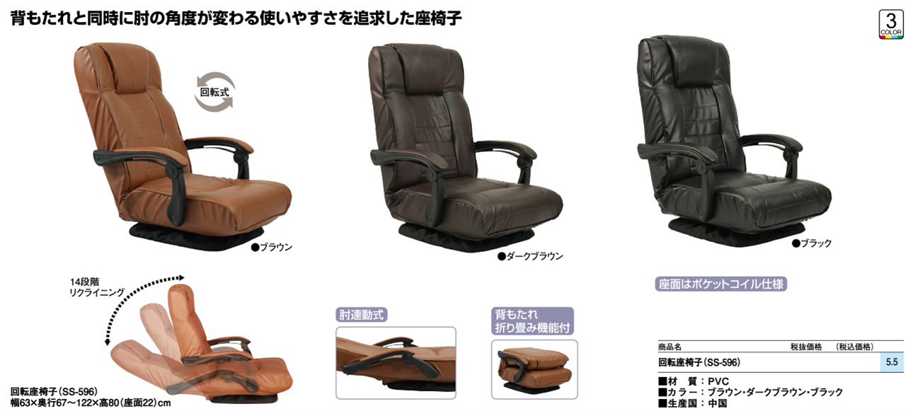 - 回転座椅子(SS-596) 税抜20, 400円 (税込22, 440円)