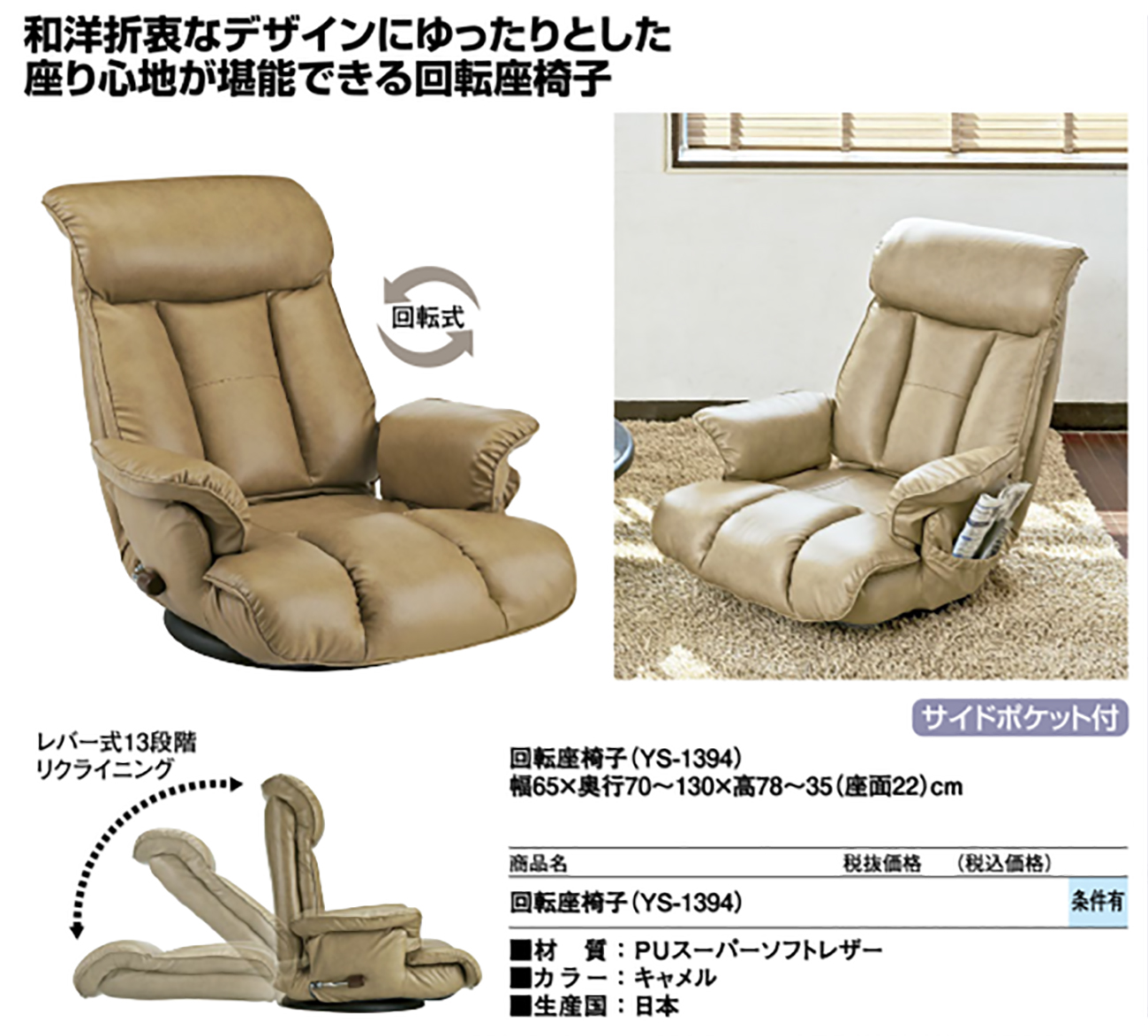 - 回転座椅子(YS-1394) 税抜65, 120円 (税込71, 632円)