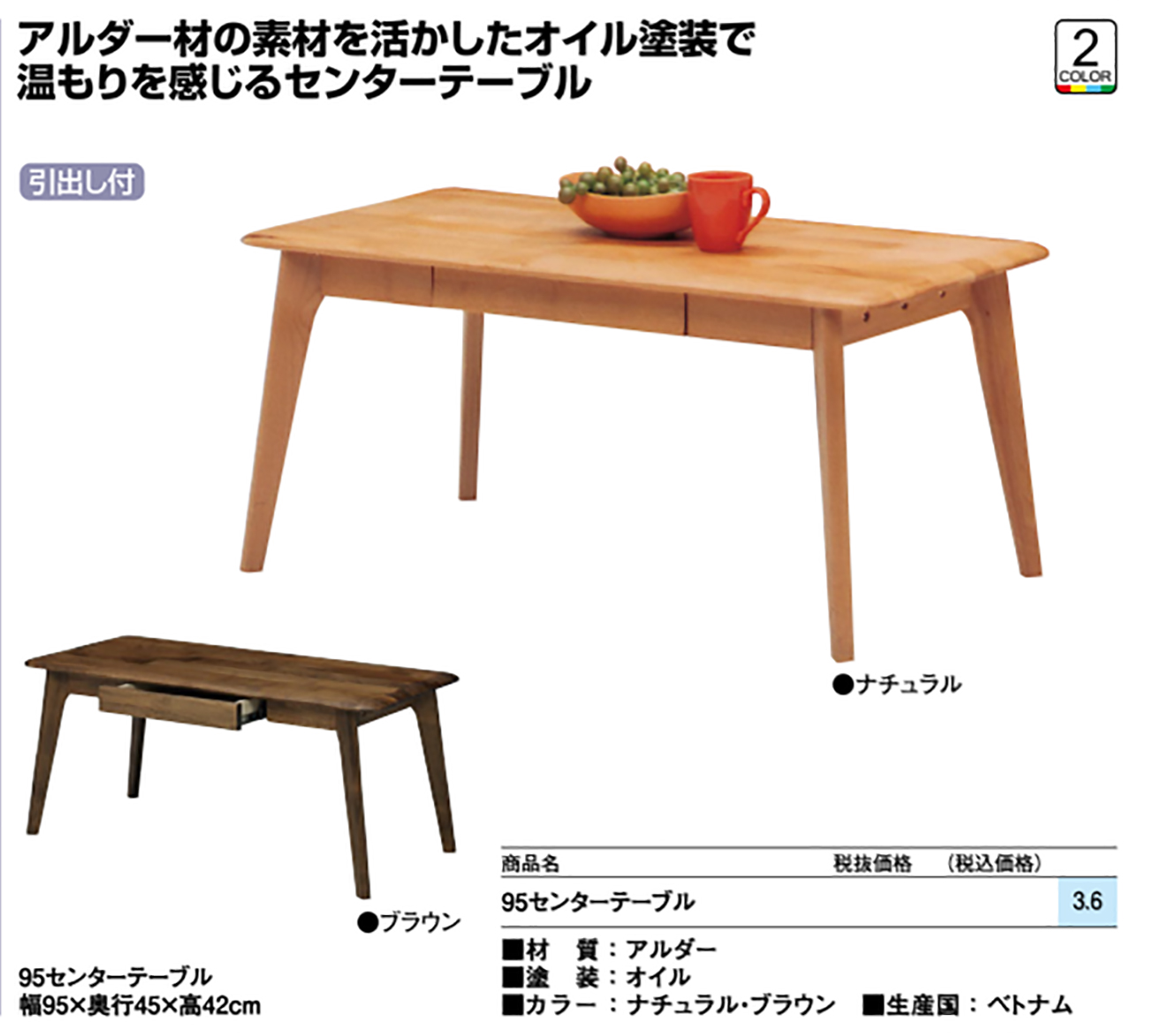 - 95センターテーブル 税抜30, 960円 (税込34, 056円)