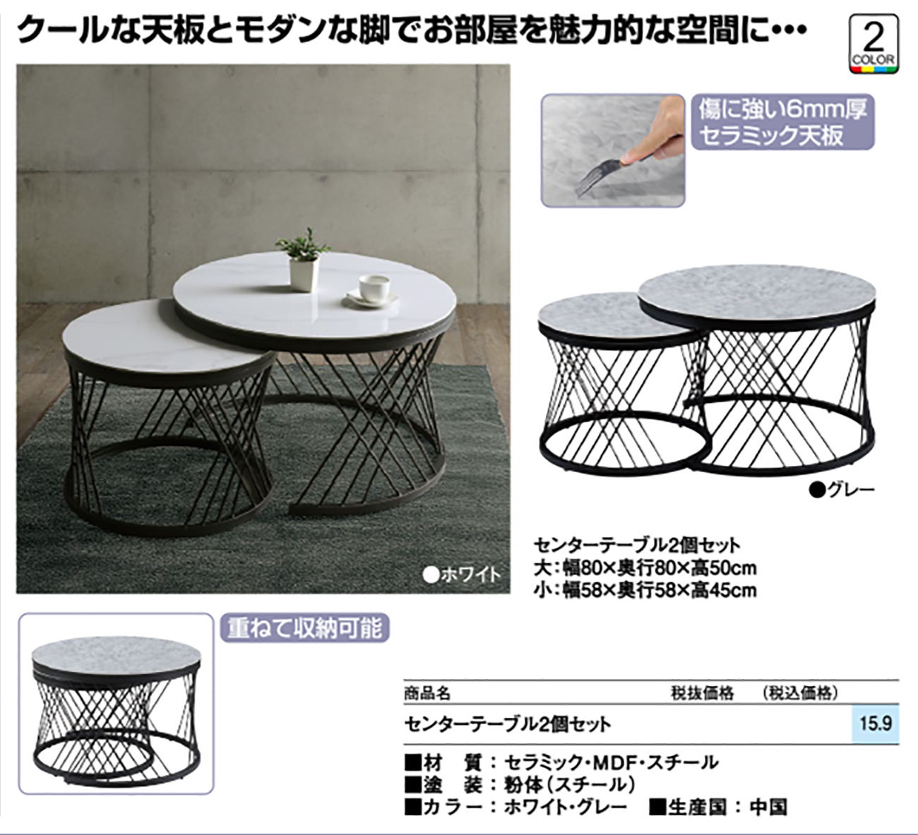 - センターテーブル2個セット 税抜64, 400円 (税込70, 840円)