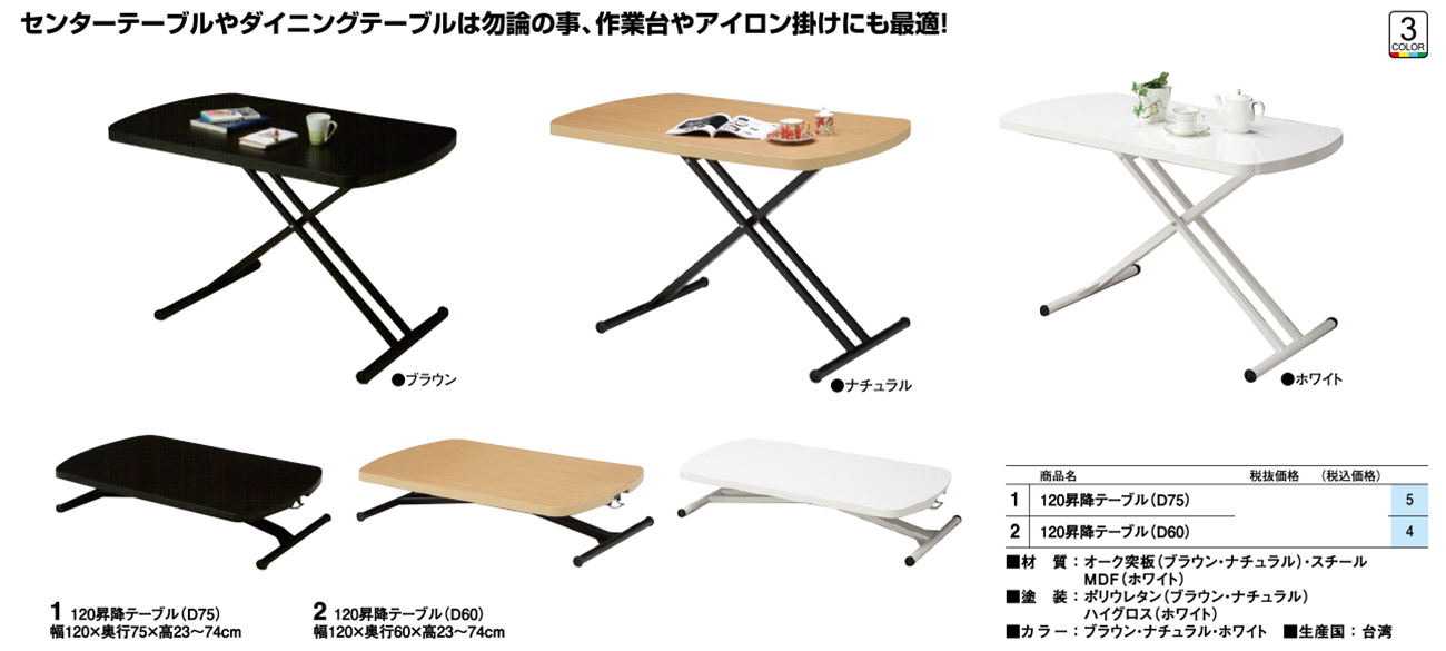 - 120昇降テーブル(D60) 税抜48, 000円 (税込52, 800円)