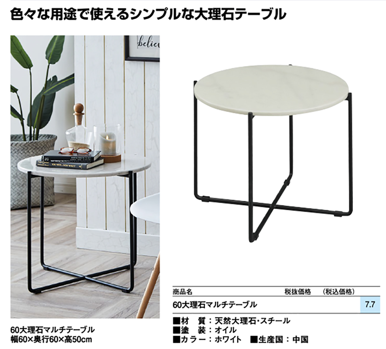 • 60大理石マルチテーブル 税抜37, 600円 (税込41, 360円)