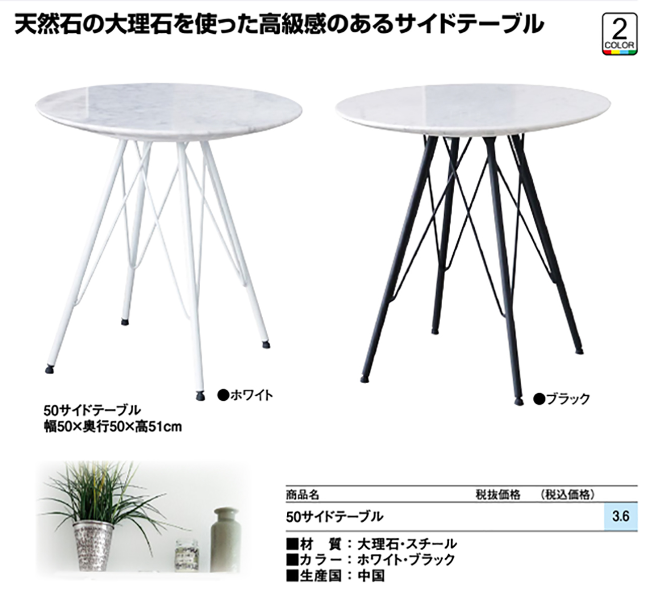 - 50サイドテーブル 税抜29, 360円 (税込32, 296円)