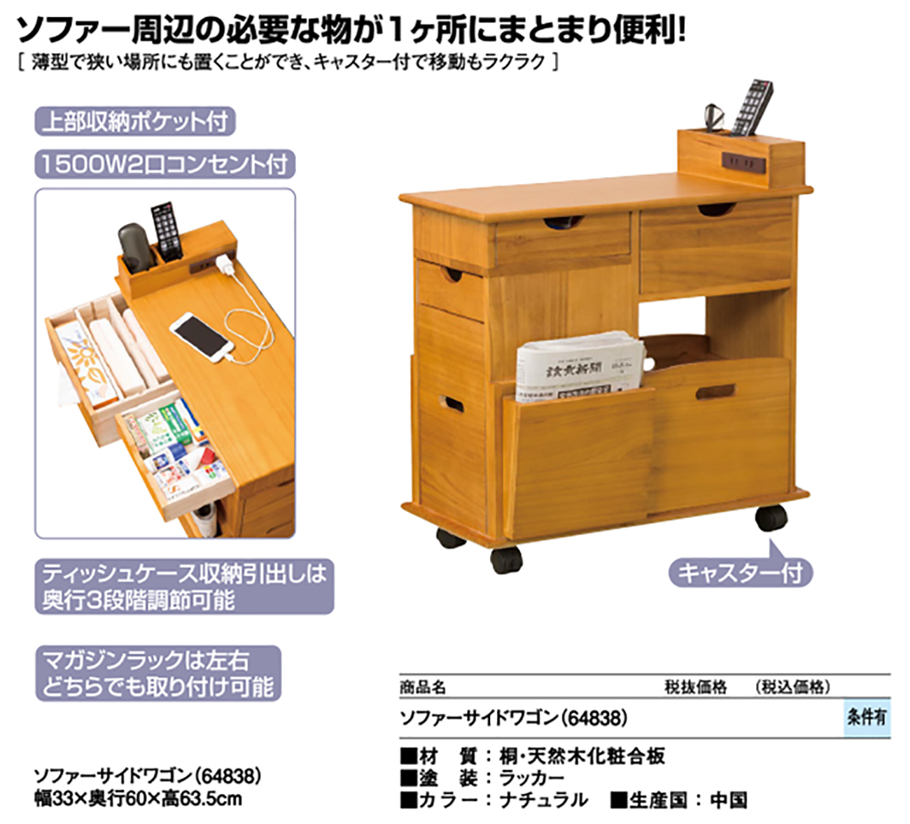 - ソファーサイドワゴン(64838) 税抜31, 200円 (税込34, 320円)