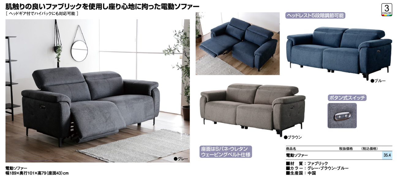 • 電動ソファー 税抜128, 000円 (税込140, 800円)