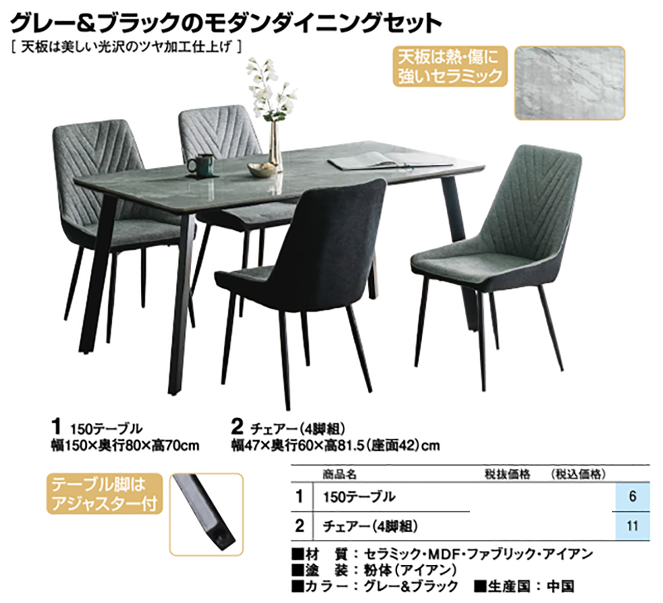 - 150テーブル 税抜42, 400円 (税込46, 640円)