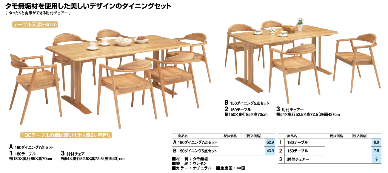- 150ダイニング5点セット 税抜244, 000円 (税込268, 400円)