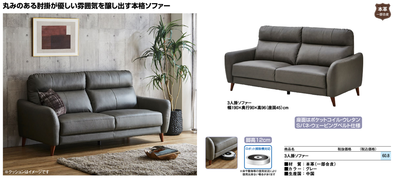 - 3人掛ソファー 税抜154, 160円 (税込169, 576円)