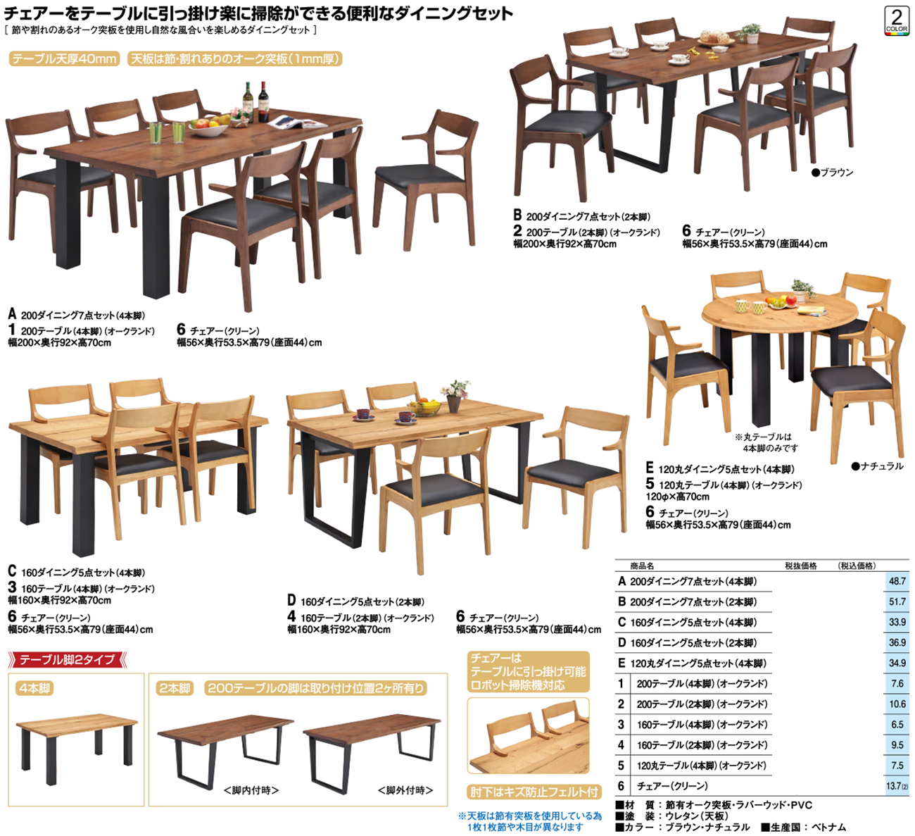 - 200ダイニング7点セット(2本脚) 税抜206, 880円 (税込227, 568円)