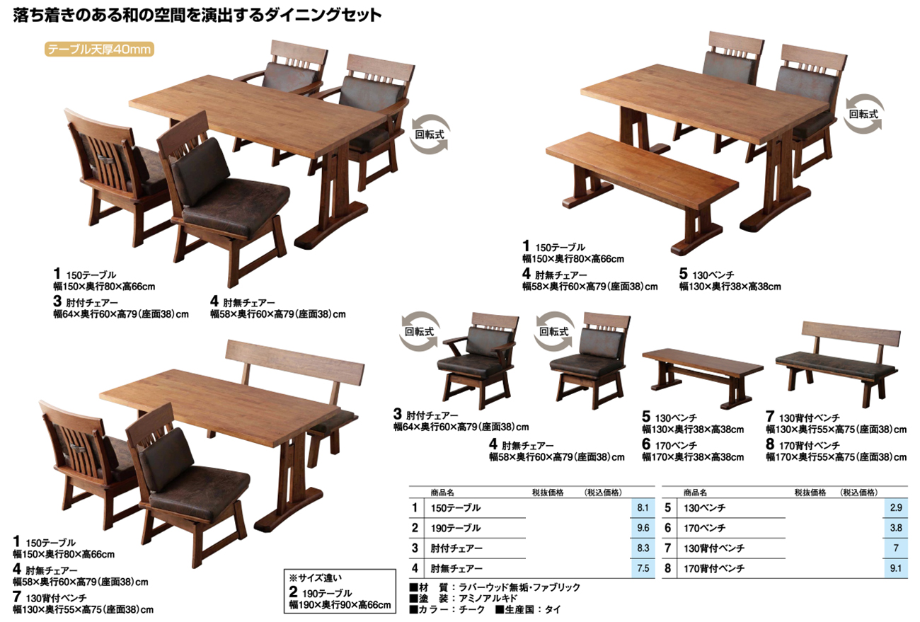 - 150テーブル 税抜58, 400円 (税込64, 240円)