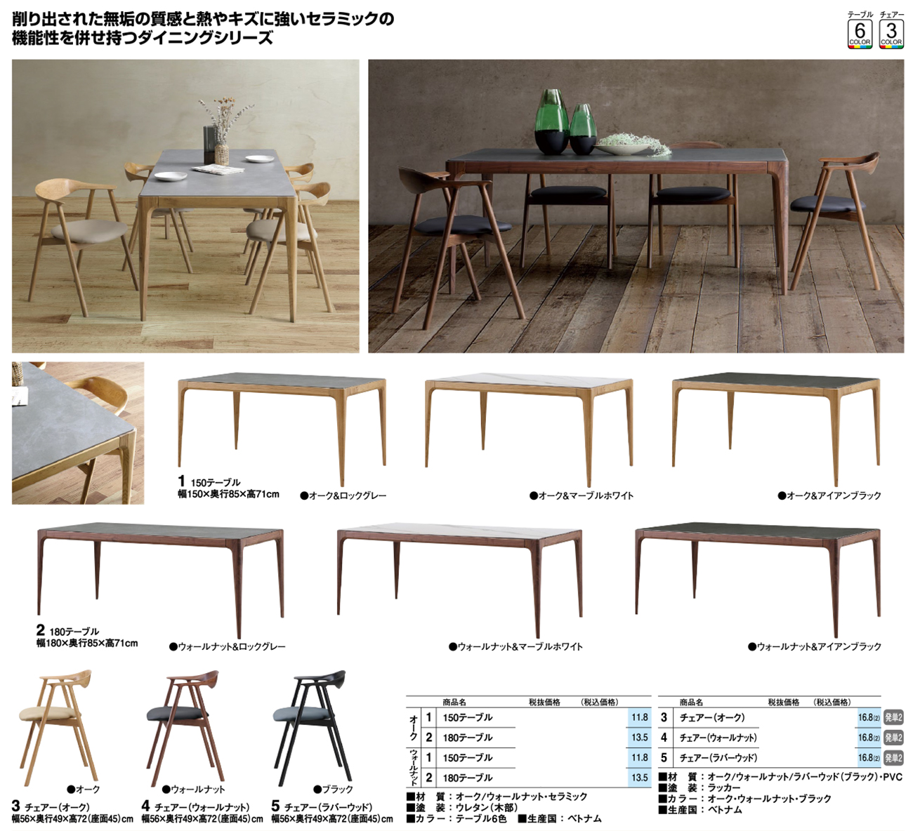- 180テーブル(OAK) 税抜156, 800円 (税込172, 480円)