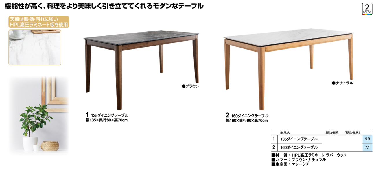 - 135ダイニングテーブル 税抜42, 160円 (税込46, 376円)