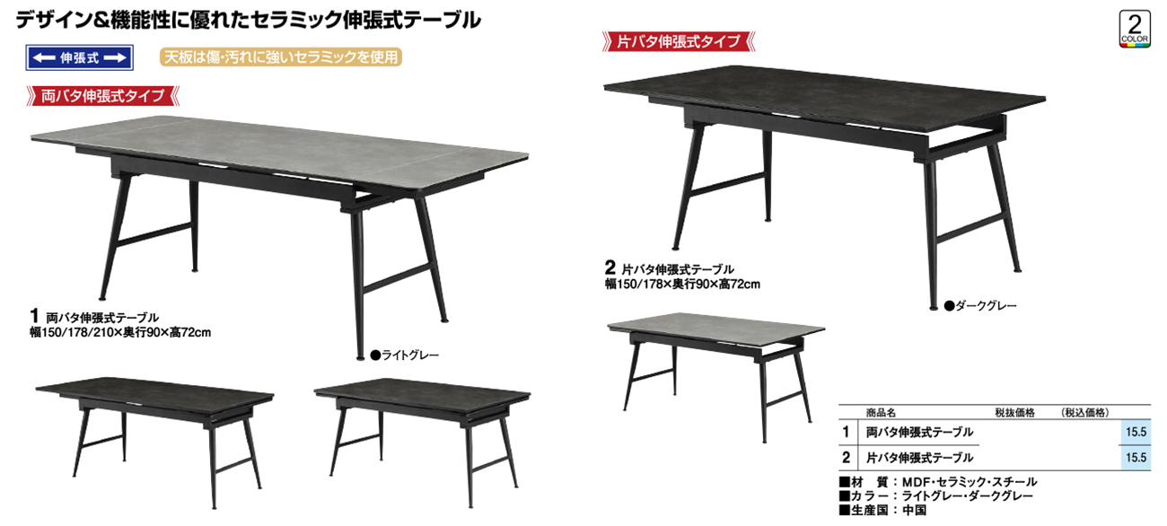 - 片バタ伸張式テーブル 税抜102, 400円 (税込112, 640円)
