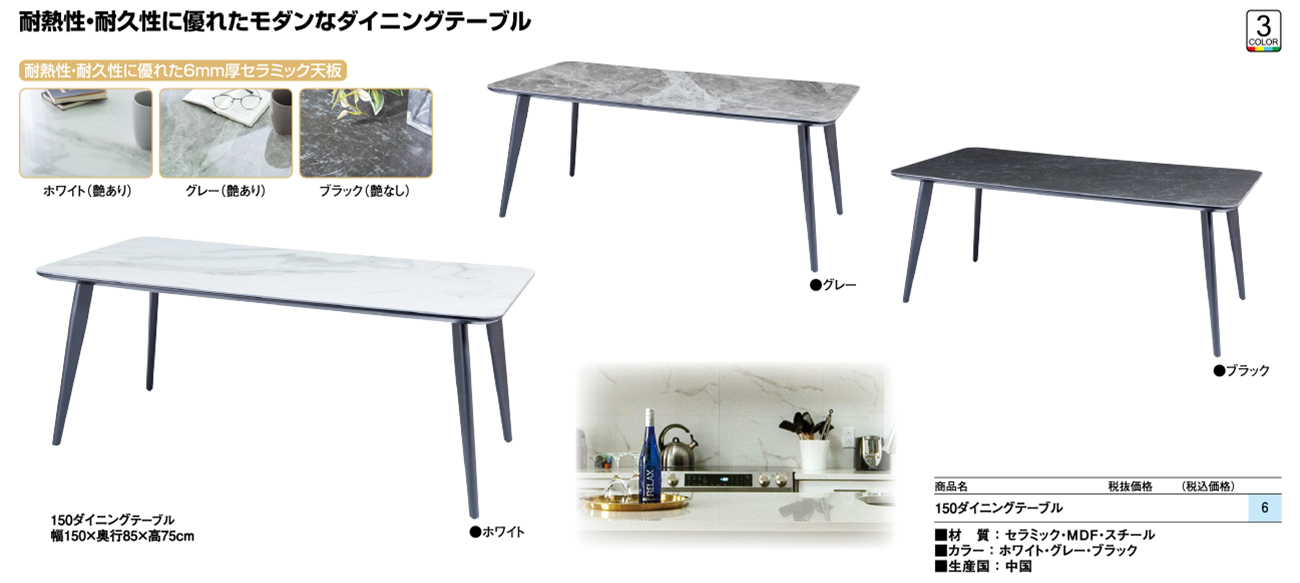 - 150ダイニングテーブル 税抜116, 800円 (税込128, 480円)