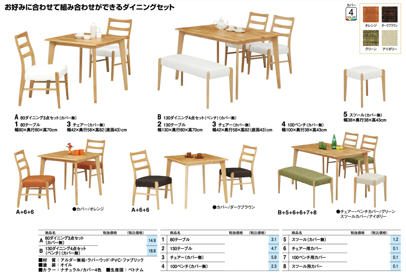 - 80ダイニング3点セット(カバー無) 税抜80, 560円 (税込88, 616円)