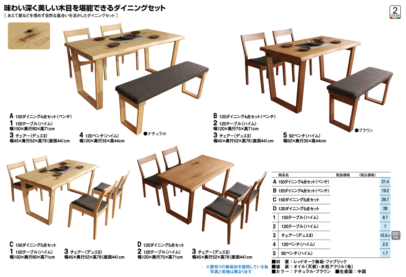- 150ダイニング5点セット 税抜143, 680円 (税込158, 048円)