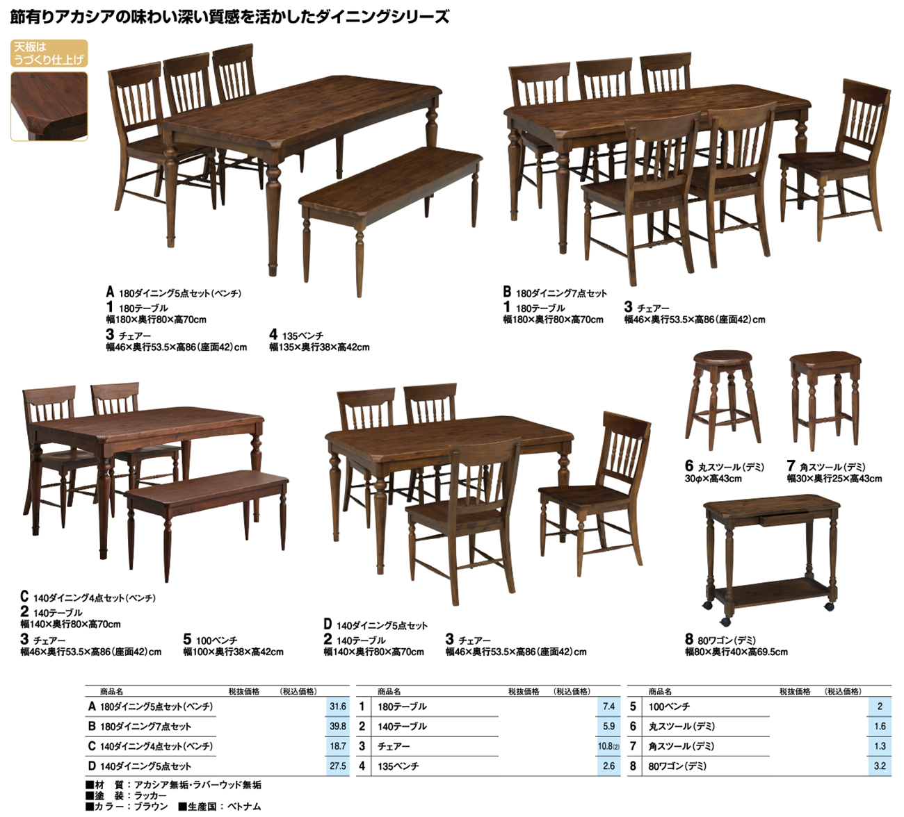 - 180ダイニング7点セット (C6)(デミⅡ) 税抜158, 320円 (税込174, 152円)