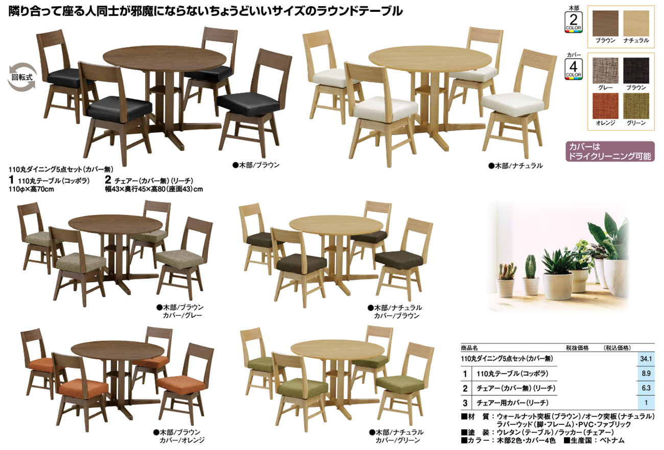 - 110丸ダイニング5点セット(カバー無) 税抜121, 280円 (税込133, 408円)