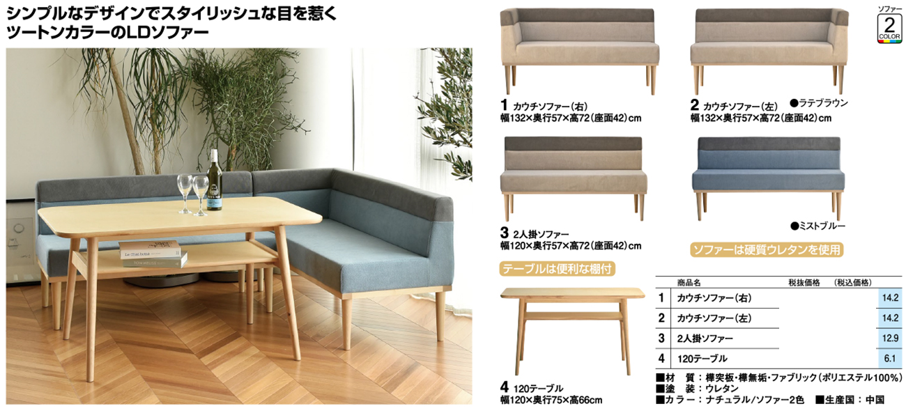 - カウチソファー(右) 税抜64, 000円 (税込70, 400円)