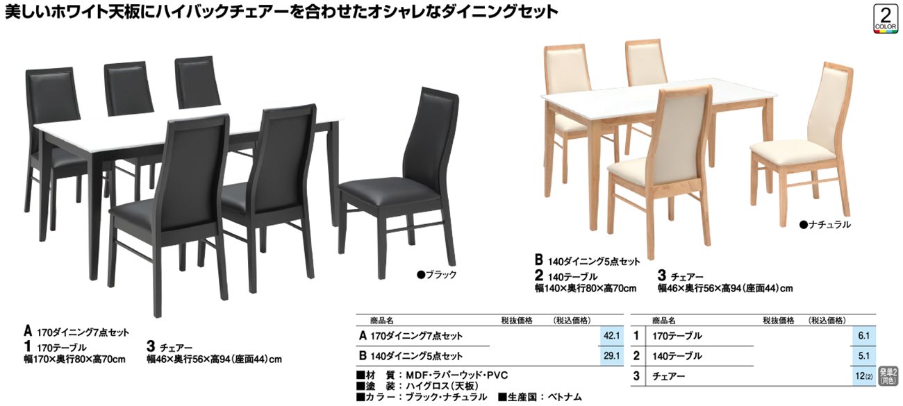 • 170ダイニング7点セット 税抜145, 680円 (税込160, 248円)