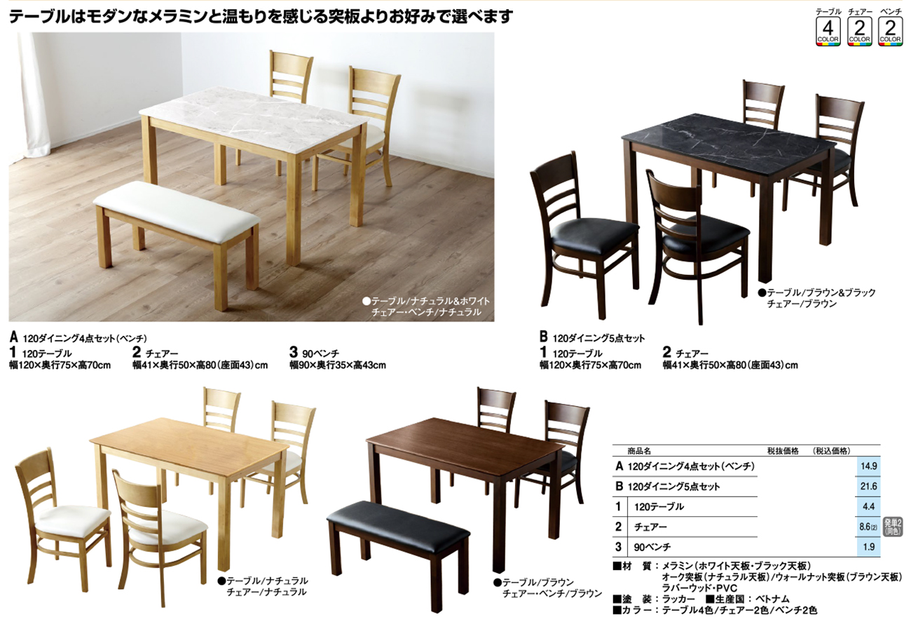- 120ダイニング5点セット 税抜49, 360円 (税込54, 296円)