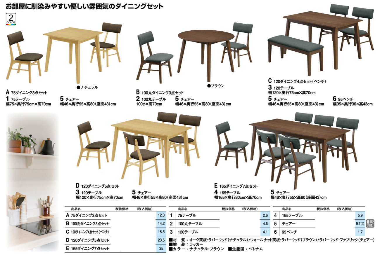 - 85ダイニング3点セット 税抜41, 200円 (税込45, 320円)
