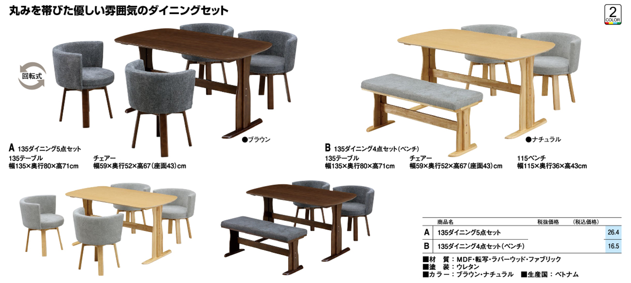 - 135ダイニング5点セット 税抜120, 800円 (税込132, 880円)