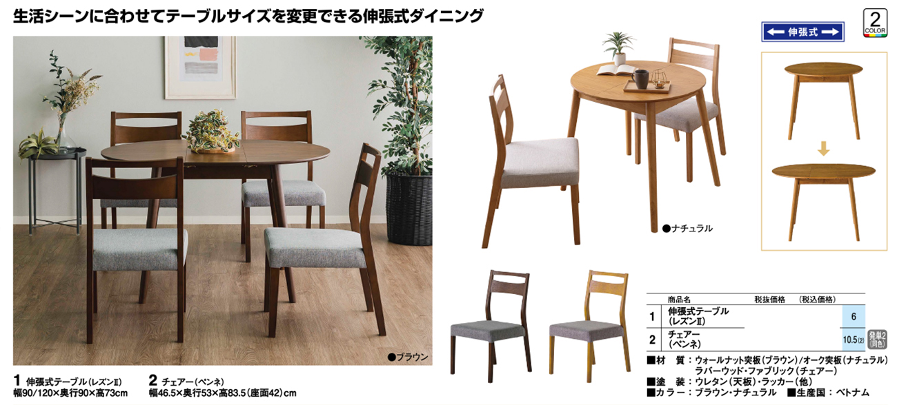 - 伸張式テーブル(レズンⅡ) 税抜53, 360円 (税込58, 696円)