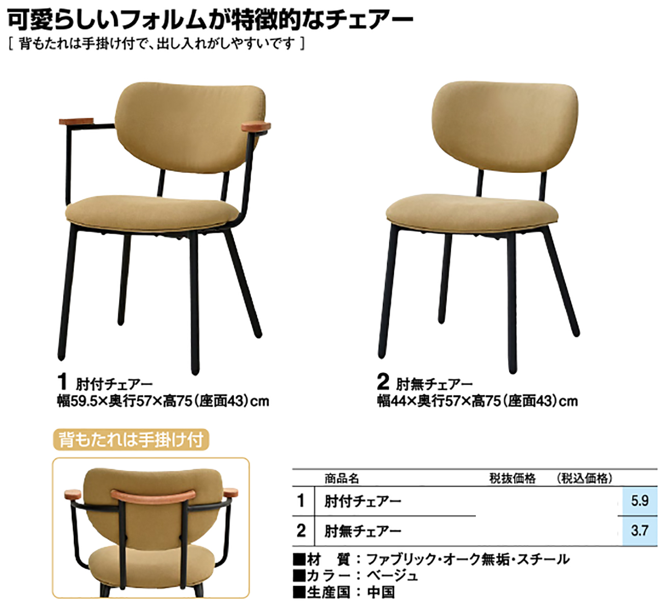 • 肘無チェアー 税抜21, 360円 (税込23, 496円)