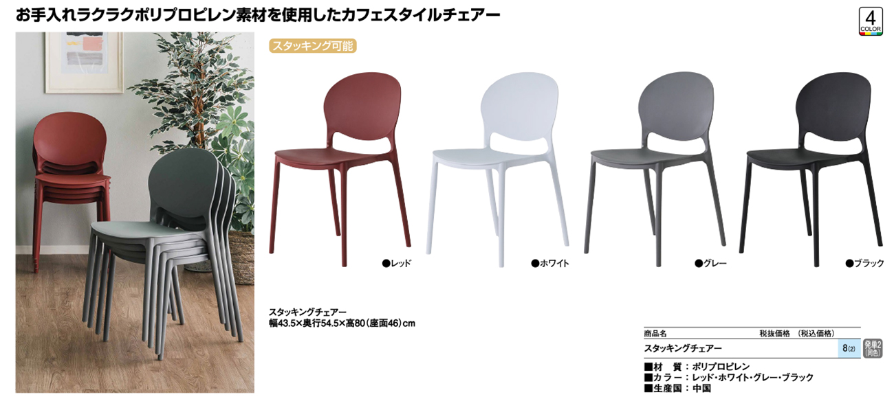 - スタッキングチェアー 税抜6, 720円 (税込7, 392円)