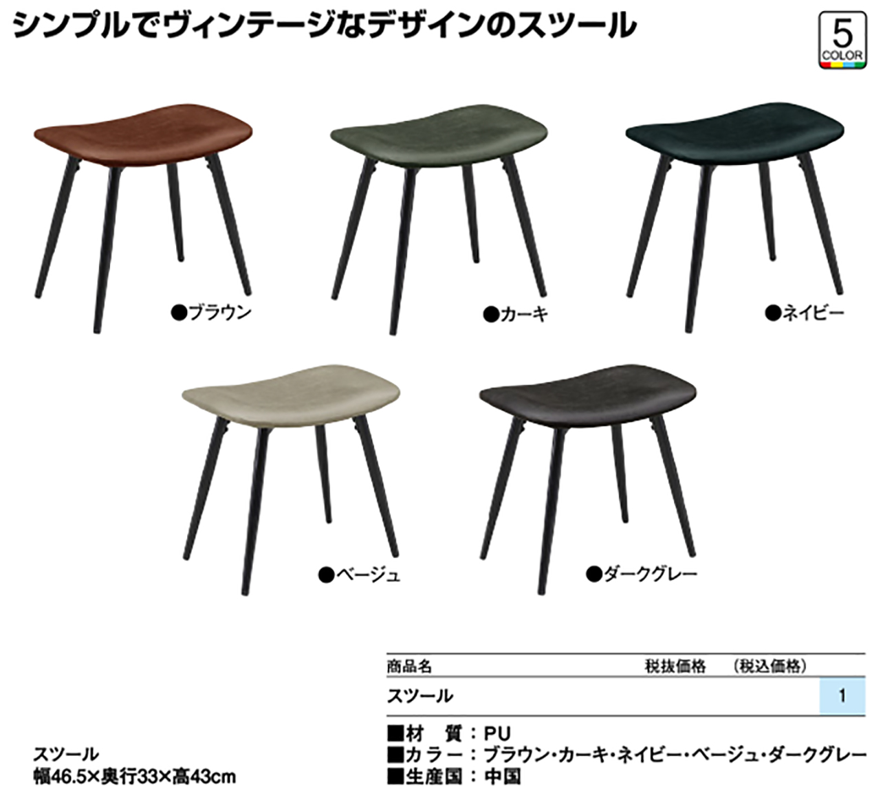 • スツール 税抜8, 800円 (税込9, 680円)