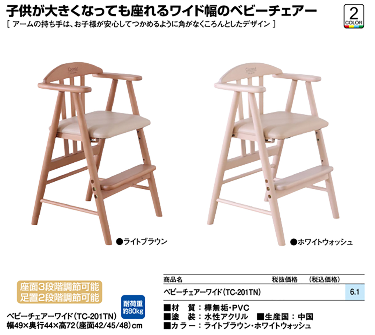 - ベビーチェアーワイド(TC-201TN) 税抜20, 800円 (税込22, 880円)