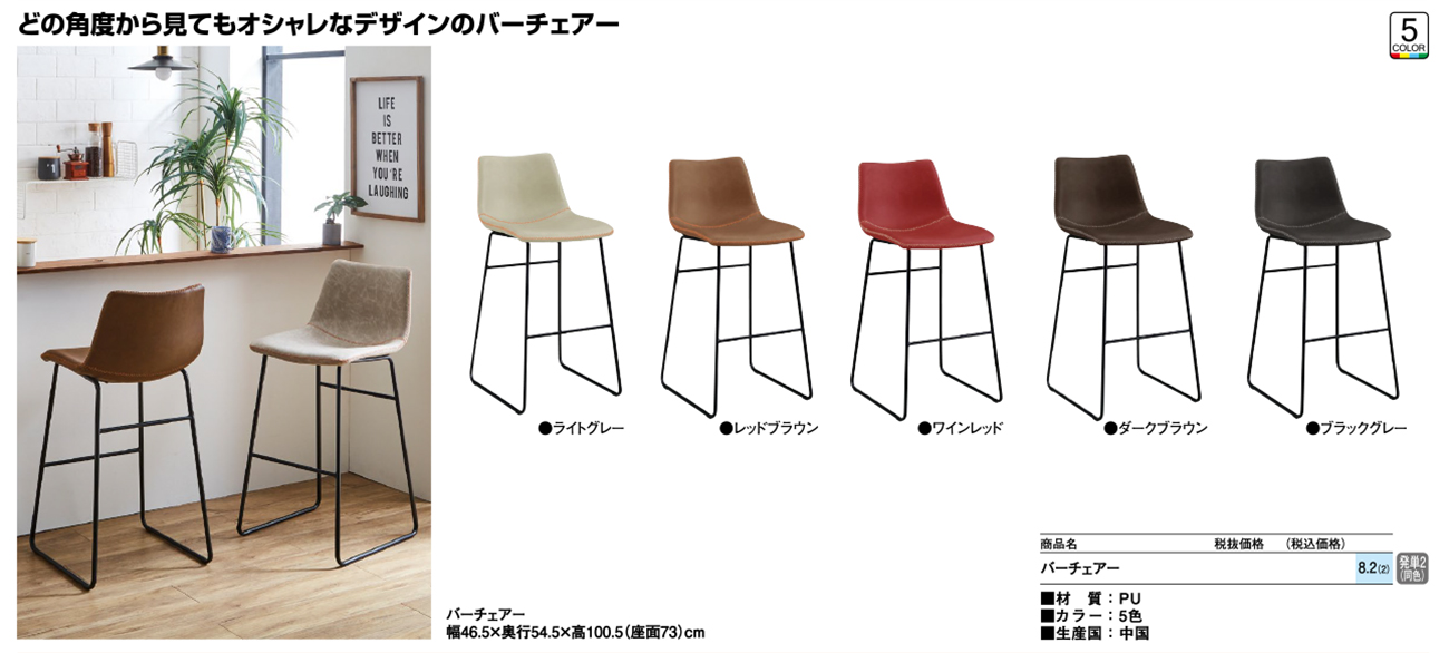 - バーチェアー 税抜19, 200円 (税込21, 120円)