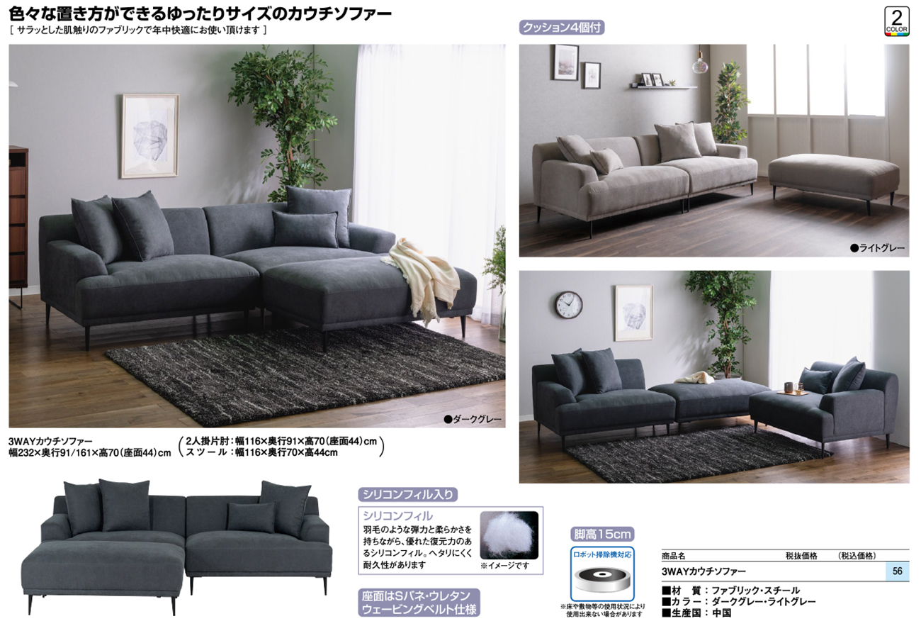 - 3WAYカウチソファー 税抜146, 720円 (税込161, 392円)
