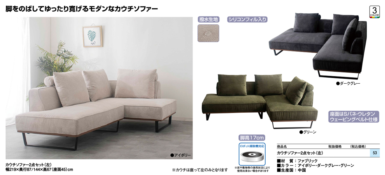 • カウチソファー2点セット(左) 税抜146, 720円 (税込161, 392円)