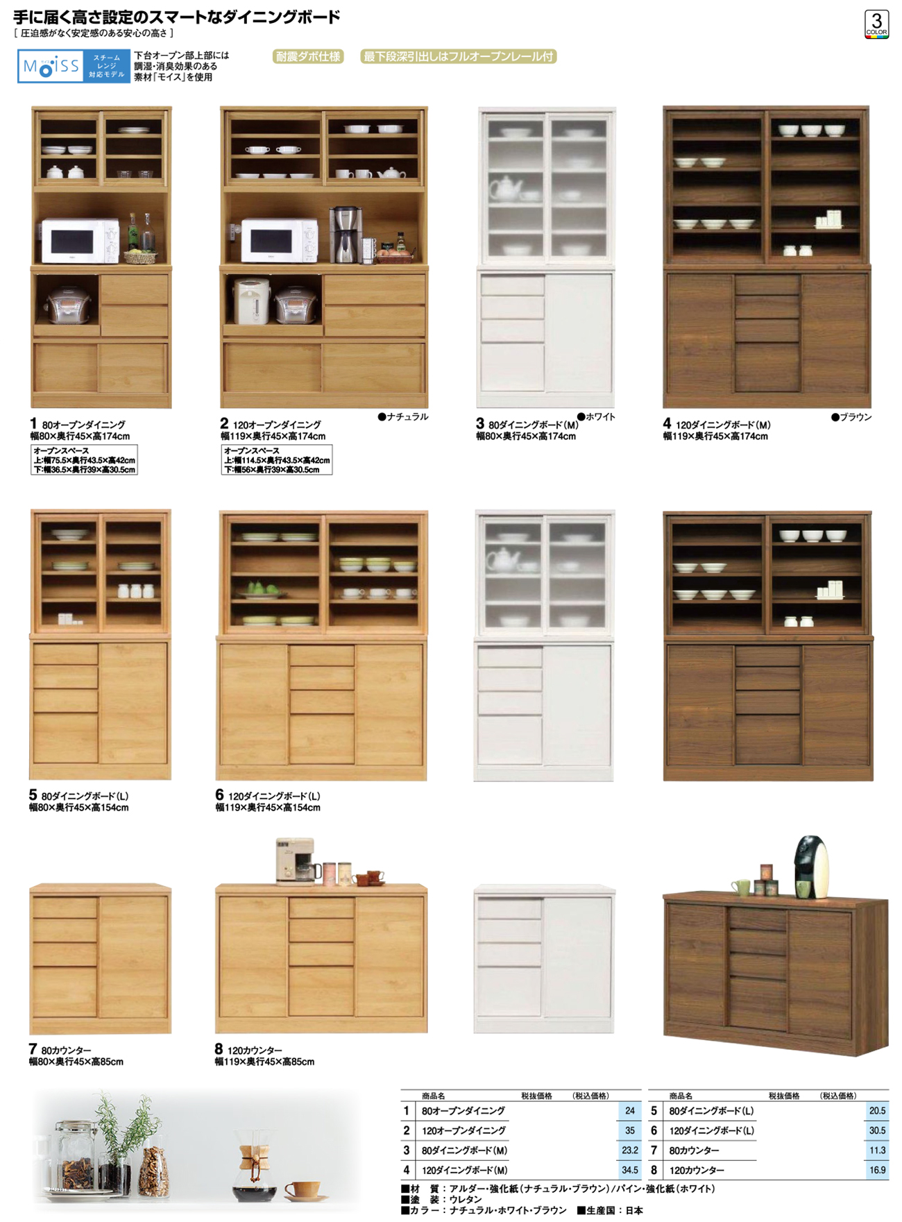 - 120ダイニングボード(L) 税抜148, 800円 (税込163, 680円)