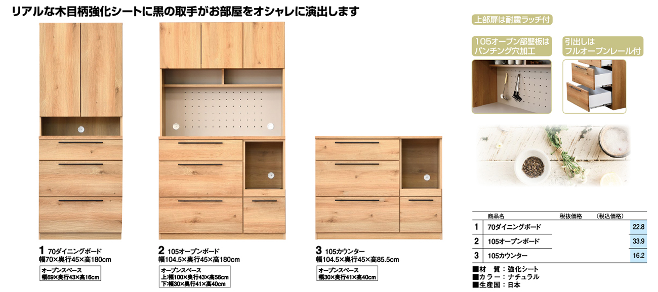 • 70ダイニングボード 税抜78, 960円 (税込86, 856円)