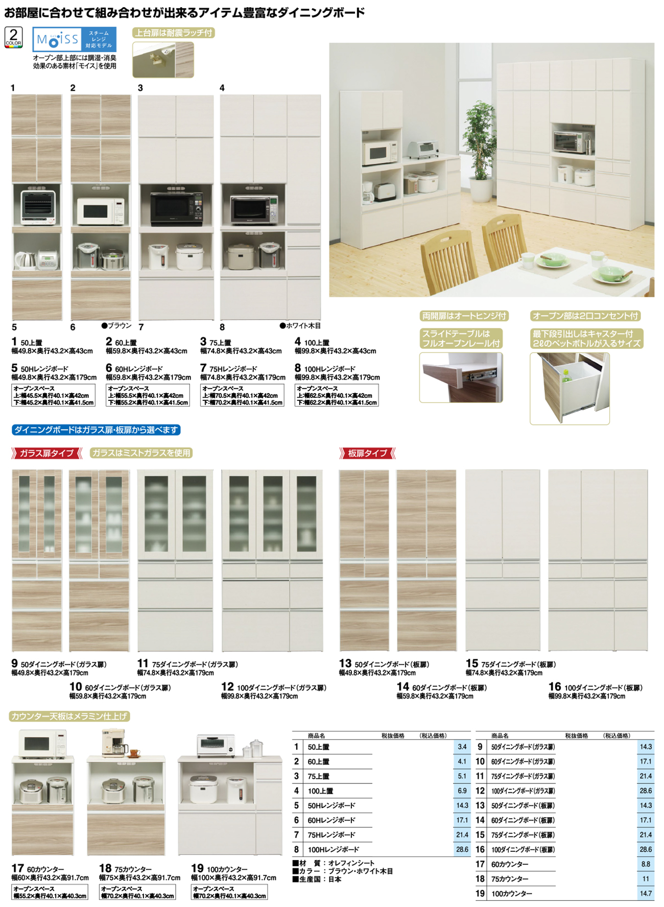 - 50ダイニングボード(板扉) 税抜71, 360円 (税込78, 496円)