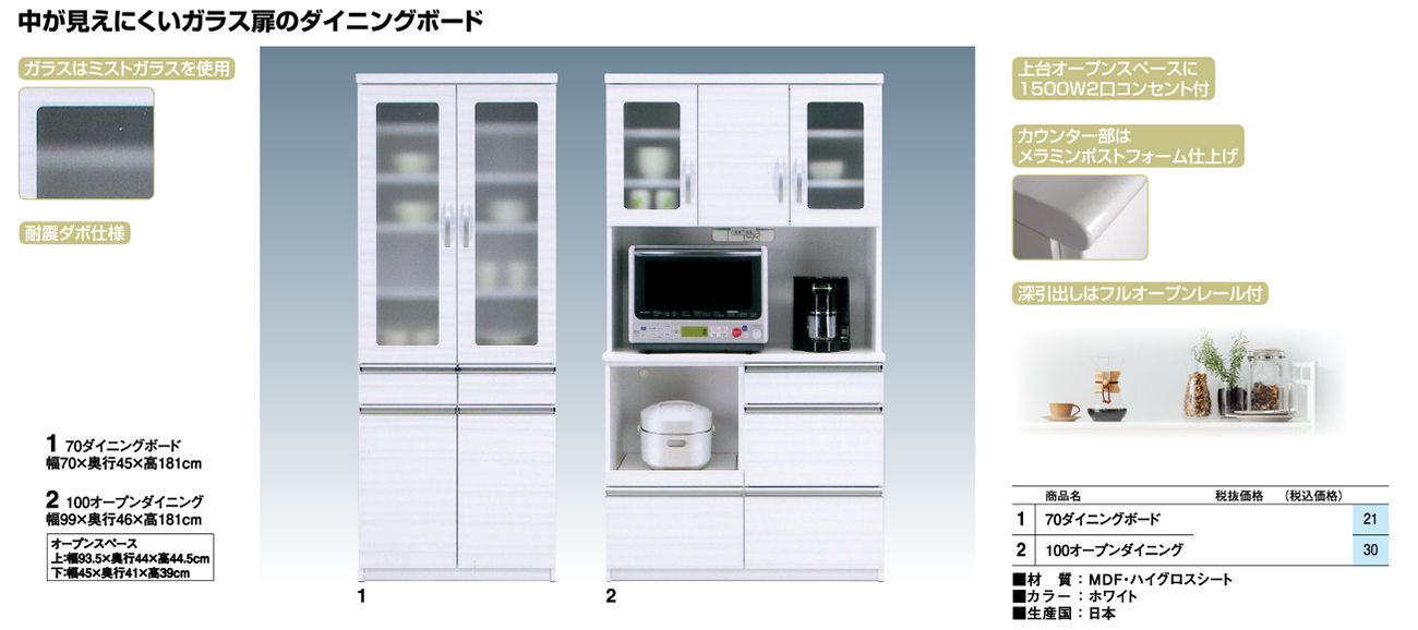 - 70ダイニングボード 税抜51, 200円 (税込56, 320円)