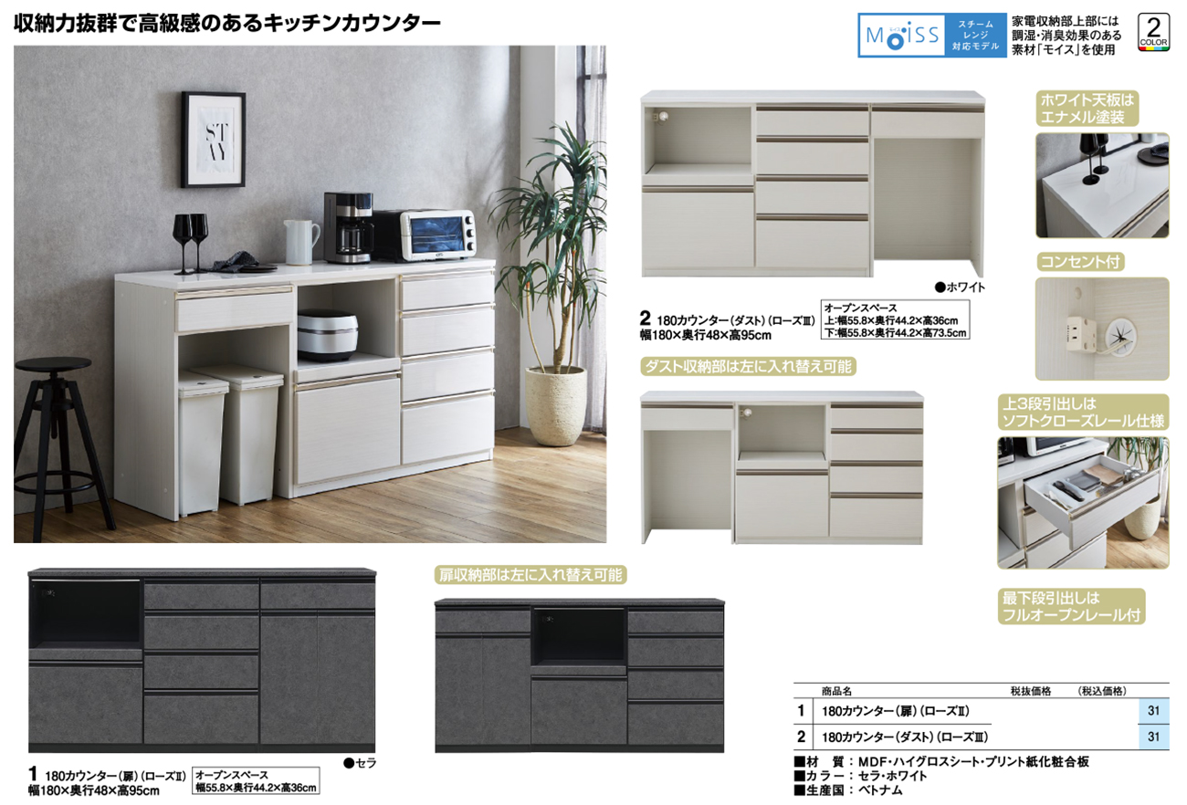• 180カウンター(扉)(ローズⅡ) 税抜153, 600円 (税込168, 960円)