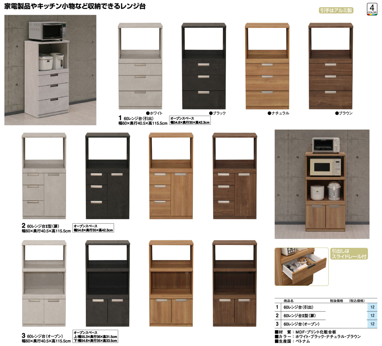 - 60レンジ台(引出) 税抜33, 360円 (税込36, 696円)