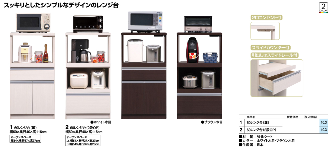 - 60レンジ台(扉) 税抜30, 400円 (税込33, 440円)