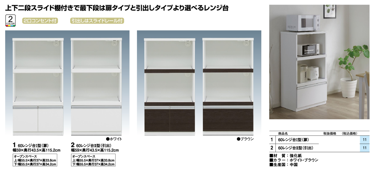 • 60レンジ台Ⅰ型(扉) 税抜30, 480円 (税込33, 528円)