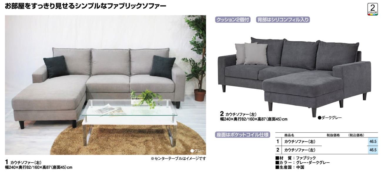 - カウチソファー(右) 税抜114, 400円 (税込125, 840円)